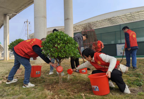 植树现场,大家团结协作,在专业人员的指导下分工明确,有人挥锹铲土,有人挖坑扶苗,有人回填浇水,确保每一个种树的环节都一丝不苟,配合默契。随着大家的热情干劲,一棵棵新栽种的小树苗迎风挺立。不久之后,这些含苞待放的枝头就会绽放出生命的芳华,为这片土地注入生机与活力。