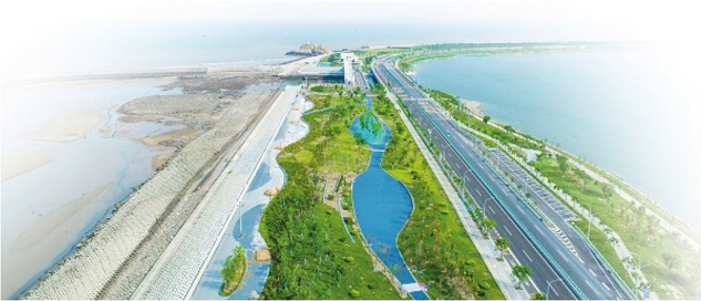 228国道长乐公路全长约5.42公里,起点接已建成的228国道南北澳至外文武围垦堤段,终点与下沙路衔接,是福建省普通国省干线公路网布局规划中纵一线(228国道)的重要组成部分。工程建设内容包含海堤升级改造、城市快速路,以及绿化带、木栈道等园林景观。