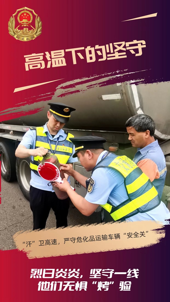 炎炎烈日,高温来袭。高速“执法蓝”无惧“烤”验,坚守一线,“汗”卫高速安全。用责任担当,换路畅人安。在烈日的炙烤下,尽管汗湿了发梢、浸透了制服,仍始终保持认真专注的工作状态。致敬!高温下的高速执法人!