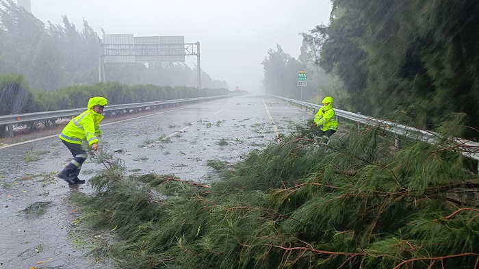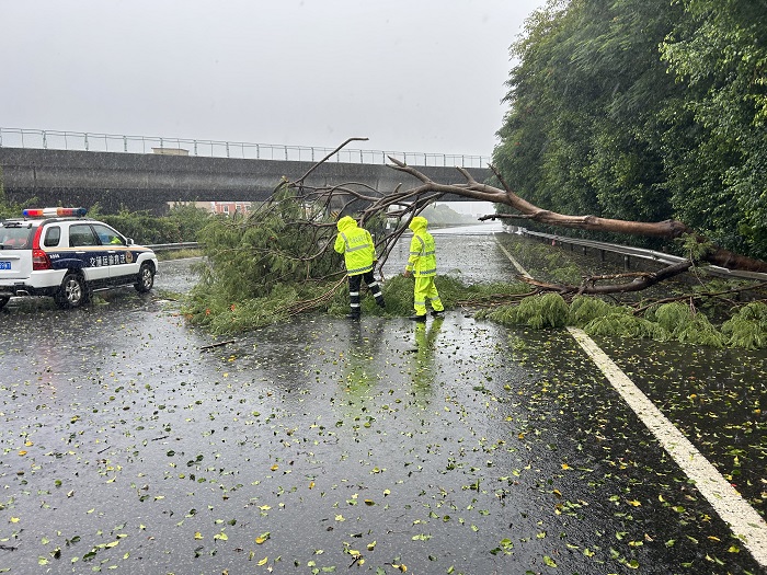 要多巡查一遍才放心。“出发,我们一起去路面巡查”虽然辖区路段已经实行封闭,但是黎涛同志还是要带队到辖区路面巡查才放心。7月28日一大早,厦门高速执法支队党员突击队黎涛同志就带领队员穿好雨衣出发了,在巡查至沈海高速A2306K路段时,发现一株被刮倒长达10余米的凤凰树倒伏在路面上,直接占据了应急车道及三个行车道。