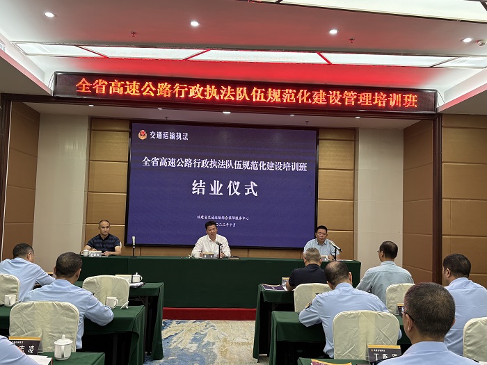本次培训围绕当前高速公路行政执法队伍建设管理中重点、难点,邀请省应急管理厅等单位专家对交通运输执法“四基四化”(基层执法队伍职业化、基层执法站所标准化、基层管理制度规范化、基层执法工作信息化)建设、高速公路行政执法安全监管及保安全保畅通保应急等内容进行专题讲授,组织参训人员现场观摩规范化建设管理试点单位即宁德高速执法支队一大队及所属宁德北中队,并集中研讨交流队伍建设管理工作经验做法。