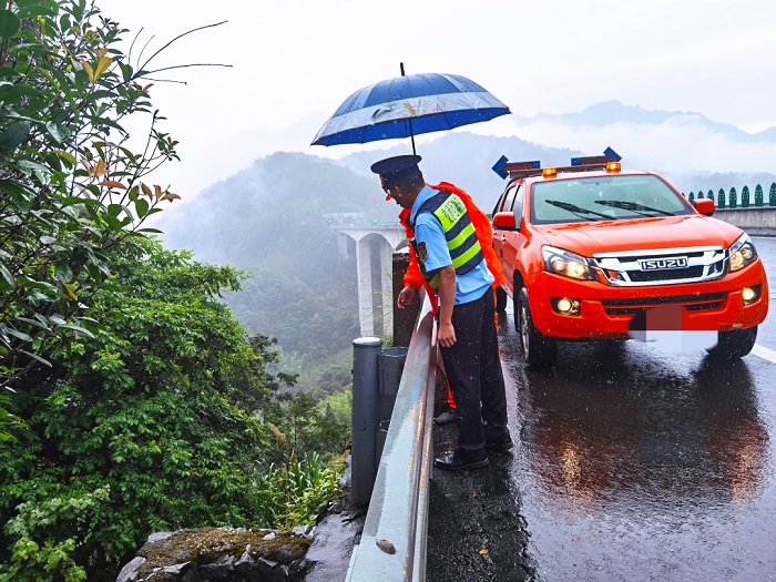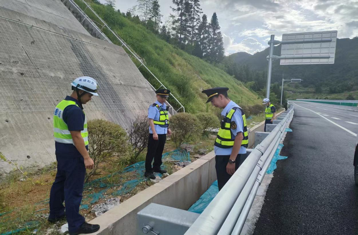 宁德高速执法支队联合交警、养护等多方力量,运用“线上+线下”“人工+无人机”的立体巡查模式,对易涝点、临崖路段等重点部位展开排查。截至7月9日,已累计投入302人次、144车次,巡查里程超万公里,开展联合巡查27次,排查整改隐患7处。