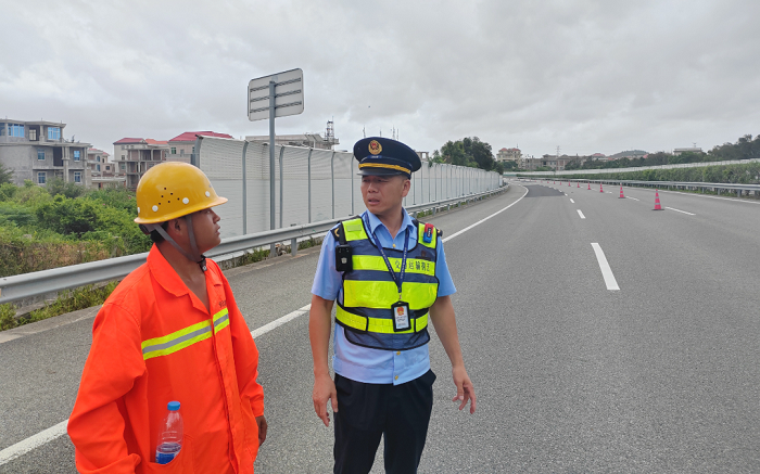 宁德高速执法支队加密对辖区在建施工项目的巡查频次与安全监管力度,重点检查施工现场安全设施及工程设备安全性能,并加强现场安全提醒,督促施工单位严格落实台风天气安全防范措施。对于存在重大风险隐患或不符合安全要求的施工作业,坚决要求停工整改。