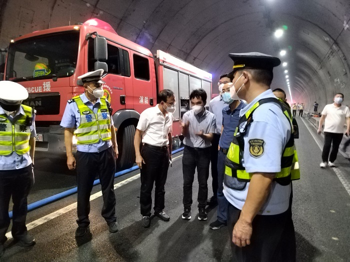 8月5日13时57分许,泉州高速执法支队收到消息:在政永高速A道白山同隧道内(273K+600M)发生两辆货车追尾事故,其中一辆运载30吨危险品氢氯酸的槽罐车发生泄漏,当天路面温度达到40摄氏度,隧道内更加闷热,氢氯酸化学性质并不稳定,在车辆高速通行的隧道内,极易产生次生事故,现场情况十分危险。