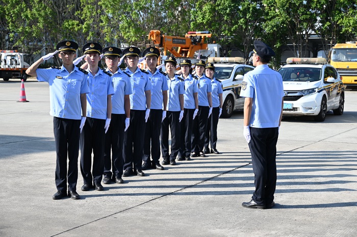 莆田高速执法支队参赛队员身着制服,迈着整齐步伐,敬礼、转体等动作标准规范,尽显执法队伍纪律严明、作风过硬的精神风貌。