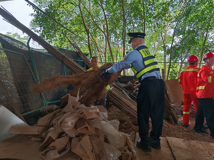 巡查过程中,执法人员发现峰顶桥下存在杂物违规堆放,现场堆放有大量木质材料、砖头、大理石板等易燃物品,不仅占用桥下公共空间,更易引发火灾事故,对桥梁结构安全和通行安全构成严重威胁。经核实,该行为系当地村民所为。执法人员第一时间与村民沟通,坚持“说理式执法、人性化引导”,耐心讲解《公路安全保护条例》相关规定,深入剖析违规堆放易燃物品的安全隐患及可能造成的严重后果。经劝导,村民充分认识到行为危害性,主动承诺于当日内将违规堆放的物品清理完毕。
