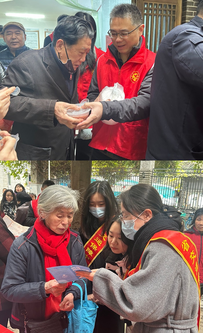 为弘扬孝老爱亲优秀传统美德,2月25日上午,中心机关第一党支部与金汤社区、中国银行东大路支行党支部共同开展“共筑爱心粥暖巷,同贺拗九孝传情”党建活动。