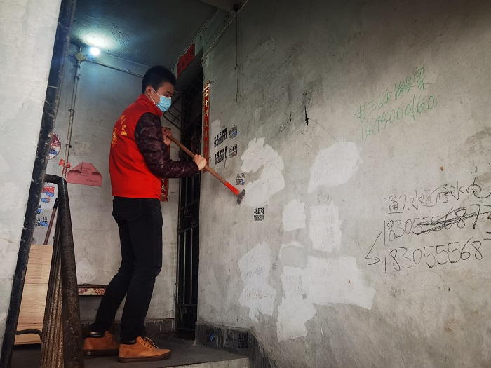 活动当天虽然天空下着淅淅沥沥的小雨,我站党员、团员青年志愿者们却依旧热情高涨,深入东湖社区老旧小区开展以清除卫生死角,清除楼道小广告、杂物等为内容的爱国卫生运动。在志愿者们的共同努力下,小区卫生面貌焕然一新。