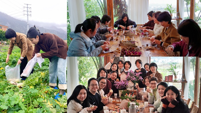 此次活动以“漫享花田·治愈春光”为主题,巧妙结合农场特色,设置了田园采摘、手工制作、围炉煮茶等体验环节。在农场的田埂上,大家挎篮弯腰,体验采摘的乐趣与收获的喜悦;在手工体验区,大家亲手将自然植物制作成清香扑鼻的香薰,在宁静中感受农耕文化的质朴与智慧;在围炉煮茶环节中,大家暂时放下工作的繁忙,团团围坐、共话成长,同时,大家结合自身岗位,围绕如何在新征程中发挥“半边天”作用展开了轻松而热烈的交流,不仅加深了彼此的情谊,更在思想的碰撞中凝聚了“实干开新局”的共识。