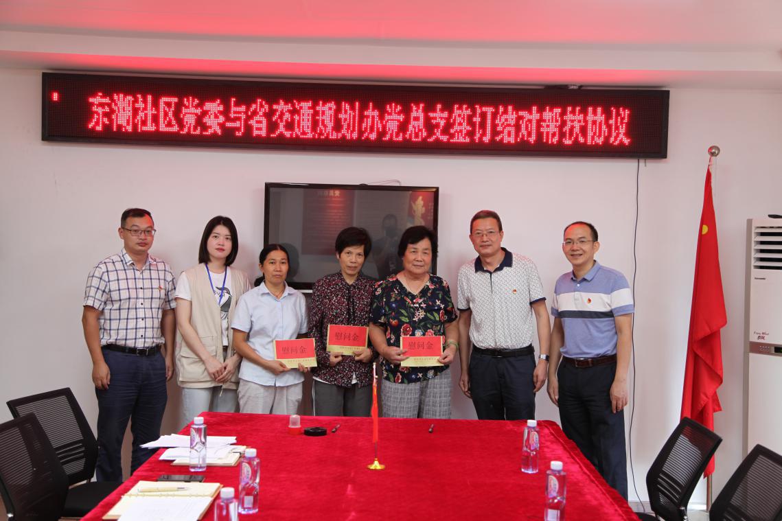接着,办党总支了解辖区困难居民生活情况后,在东湖社区党委的见证下与辖区内三户困难居民签订了结对帮扶协议,为她们送上慰问金。