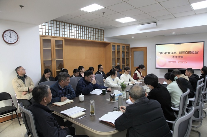 为深入弘扬社会公德,强化交通领域责任担当,12月31日,省交通规划办组织举办了以“践行社会公德,彰显交通担当”为主题的道德讲堂。通过“唱、看、诵、讲、评、诺”六大环节,为办全体干部职工带来了一场兼具思想性与感染力的道德洗礼,凝聚起践行文明新风、勇担交通使命的共识与力量。