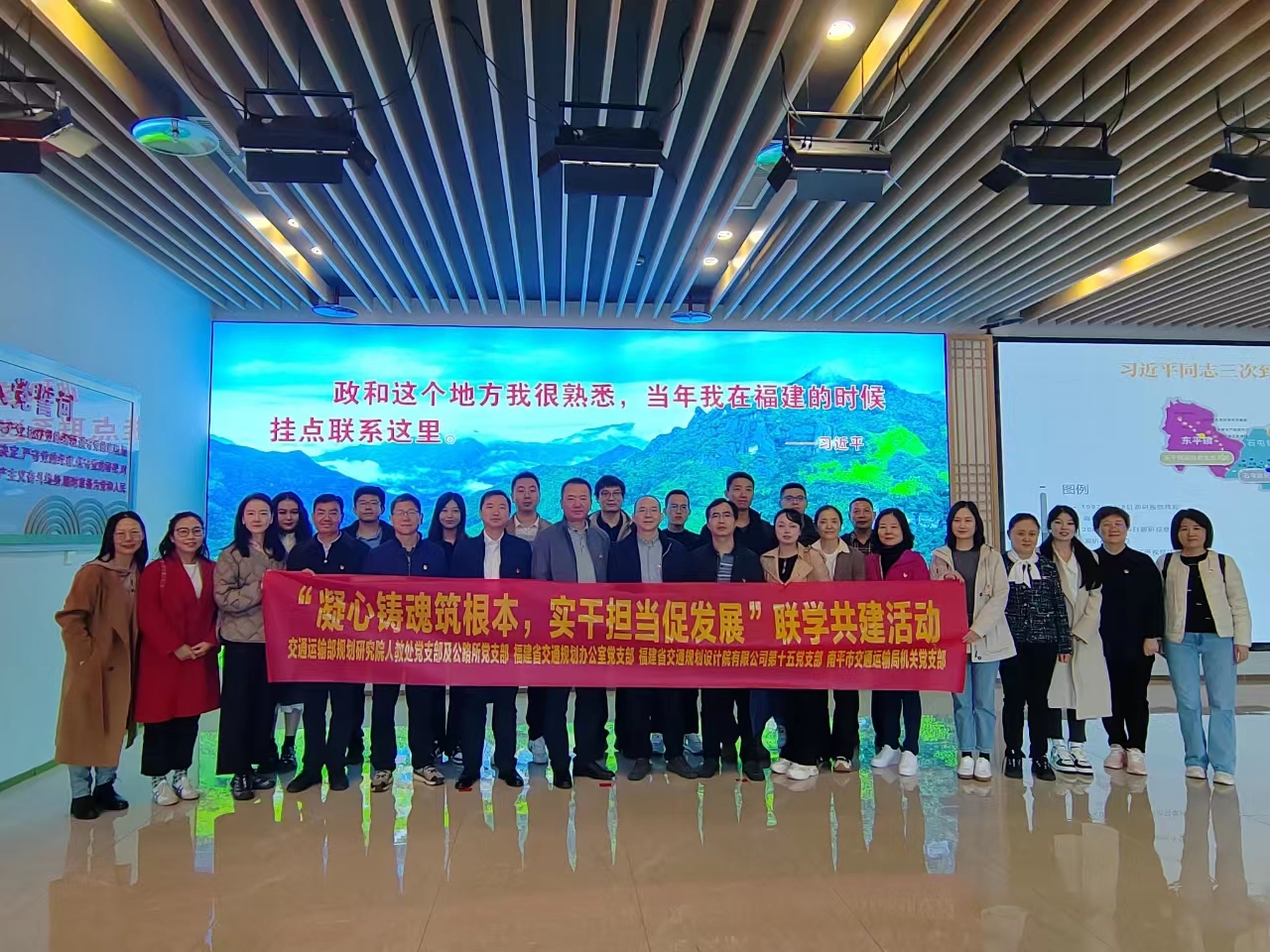 为持续推进学习贯彻习近平新时代中国特色社会主义思想主题教育,深入实施“深学争优、敢为争先、实干争效”行动,进一步推动党建与业务深度融合,近日,部规划院两党支部(人教处、公路所)与省交通规划办、南平交通局、省交规院等3单位党支部共同开展以“凝心铸魂筑牢根本,实干担当促进发展”为主题的支部联学共建活动。