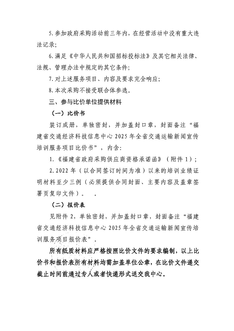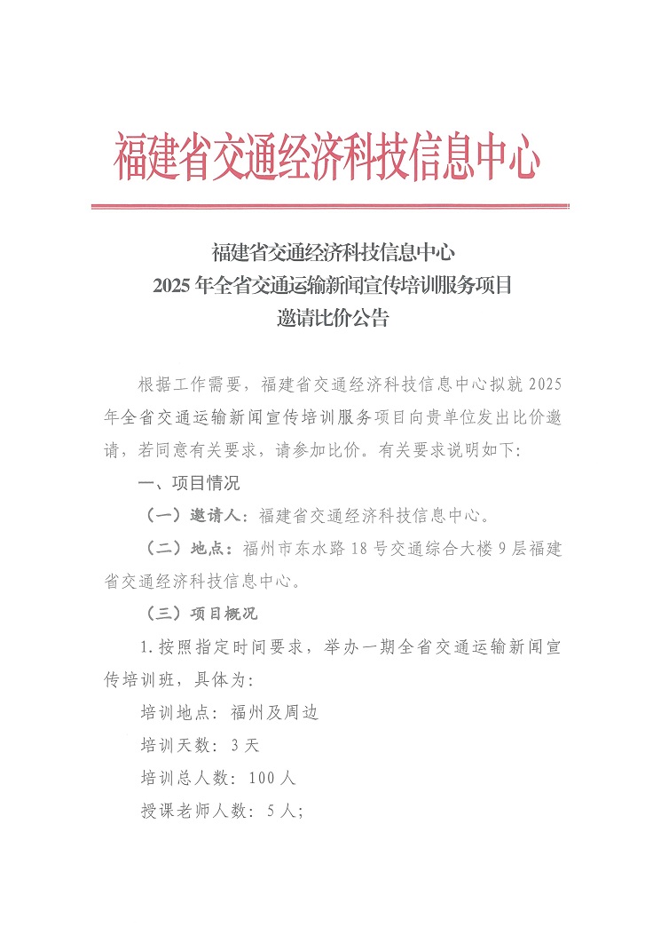 福建省交通经济科技信息中心2025年全省交通运输新闻宣传培训服务项目邀请比价公告