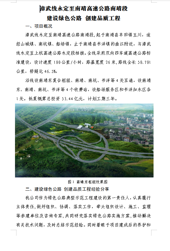 漳武线永定至南靖高速公路南靖段建设绿色公路创建品质工程