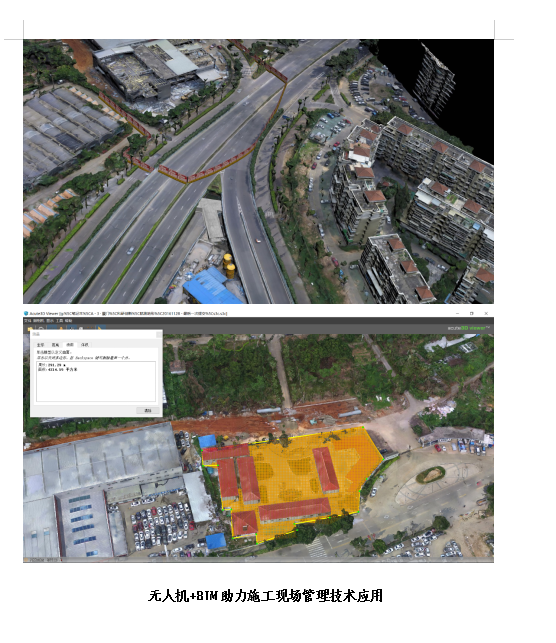 无人机航拍的实景三维影像,通过倾斜摄影技术将实拍三维照片进行处理衔接,使三维影像与实际现场真实景象相吻合。无人机航拍时,提前在拍摄区域内布设两个及以上控制点。在BIM模型按原设计坐标建立好之后,将BIM模型按1:1比例放入三维影像对应的控制点上,这样就将BIM模型按设计位置载入实际现场之中。如此,征地红线位置、拆迁内容、现场临建布置、实际管线迁改、水电进场接口、施工便道位置、场平标高情况等均清晰明了,使前期的施工组织设计更为优质的服务于现场施工。