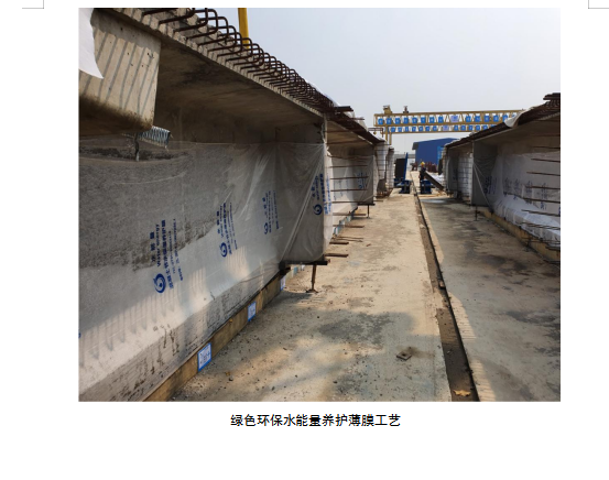 为提高本工程梁片养护效果,莆田联十一线项目采用新型可控高分子材料节水保湿养护膜技术。传统的养护工艺为土工布洒水保湿覆盖养护;土工布洒水保湿覆盖养q护受限于天气及人工影响,特别是高温期间蒸发作用明显,养护效果往往不理想,表现为养护不均匀、强度增长缓慢、容易产生温度引力裂缝等,且需要在养护期间不间断进行洒水保湿养护,工效低下。