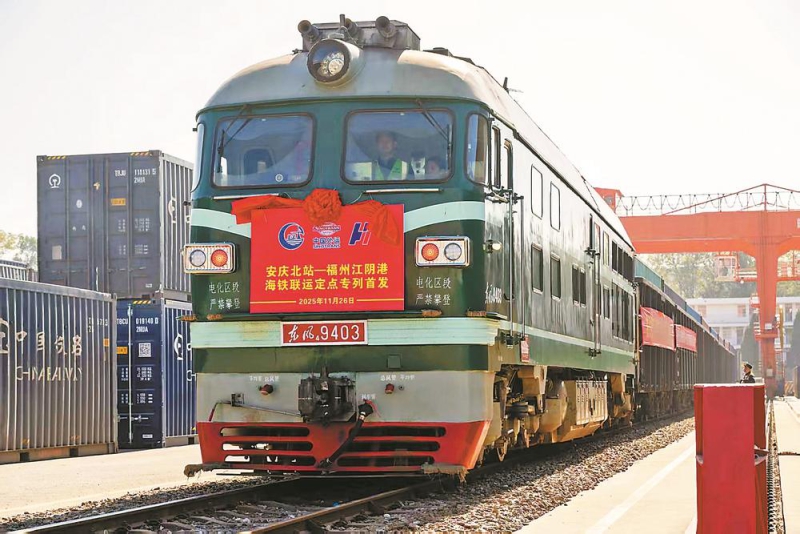 值得一提的是,此次专列货物从安徽安庆启运,经由江阴港区发往台湾,实现与对台海运班轮的无缝衔接,全程运输时效从原来的15~20天大幅压缩至5~8天,凸显福州港对台主通道优势。数据显示,今年1—11月,福州港江阴港区集装箱海铁联运操作总量达64138标箱,保持稳定增长趋势。(记者 戴敏 通讯员 陈怡悦 文/图)