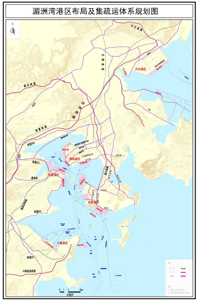 (1)湄洲湾港总体规划(修编)在规划规模和功能定位上与《全国沿海港口布局规划》和《福建省沿海港口布局规划》一致,港区发展规模与《福建省沿海港口布局规划》基本一致。