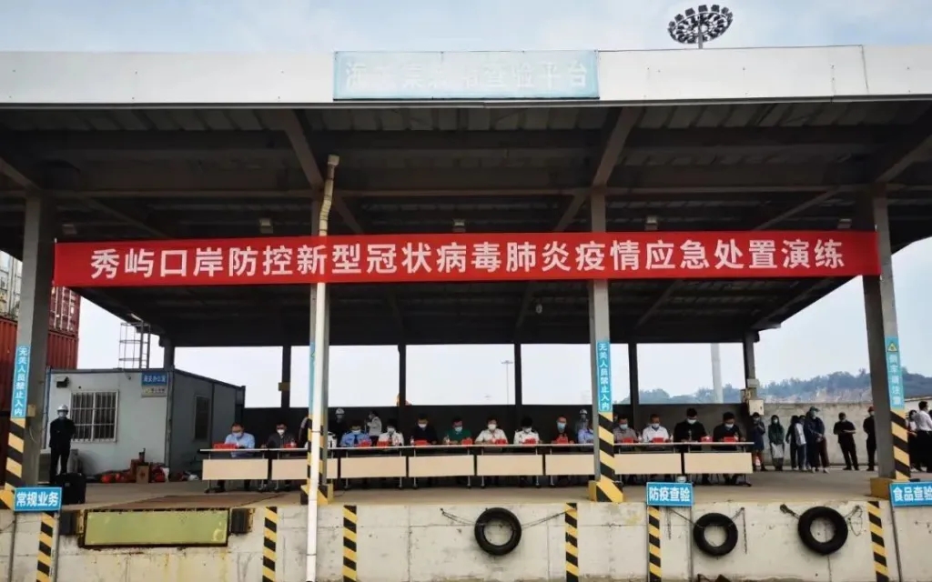 4月22日下午,秀屿区口岸防控新冠肺炎疫情应急处置演练在莆头港口公司举行。秀屿区政府、口岸联检单位及莆田港务集团等相关单位参加活动。