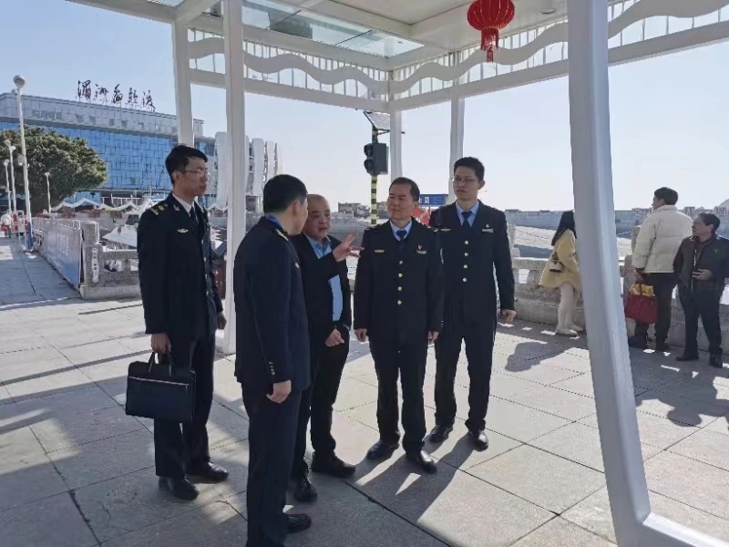 从购票广场到候船大厅,从入口安检到旅客上下船,执法支队副支队长许志勇带领执法员们一一进行检查。