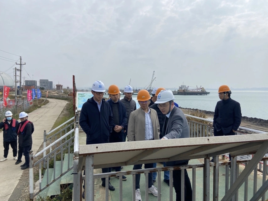 3月7日上午,省质安中心主任黄善明一行到我港石门澳作业区6#、9#和11#泊位工程项目调研指导。中心党委委员、副主任魏卓慧,质安站及参建单位相关负责人陪同调研。