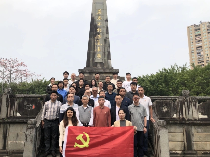 在革命烈士纪念碑前,全体党员、干部职工肃立、默哀,并献上鲜花寄托哀思,向革命烈士致以崇高的敬意。在领誓人的带领下,全体党员面向鲜红的党旗,庄严地举起右手,向党旗宣誓,在阵阵激昂的宣誓声下,用心传递着昂扬向上的斗志和为共产主义事业奋斗终身的决心。