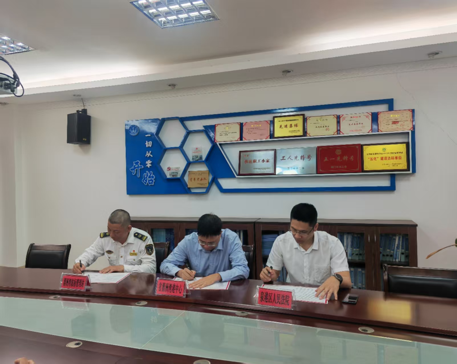 4月17日,为持续推进港航行政执法程序规范,结合深入贯彻中央八项规定精神学习教育中有关履职尽责的要求,我中心及执法支队联合泉港区法院、湄洲湾航标管理站,围绕“党建联建、生态司法、信息共享、普法治理、清廉港湾”联建促融主题,走进航标保养车间了解养护流程与技术标准,搭乘执法船踏勘、巡查湄洲湾航道,直抵罗屿40万吨码头等重大项目港池前沿,交流“商渔共治”等重点工作,签署三方联建协议,推动司法服务与港口管理同频共振、同向发力,确保港口通航环境平稳有序。(人事处 林慰敏,财务处 黄巧静,执法支队 苏标辉)