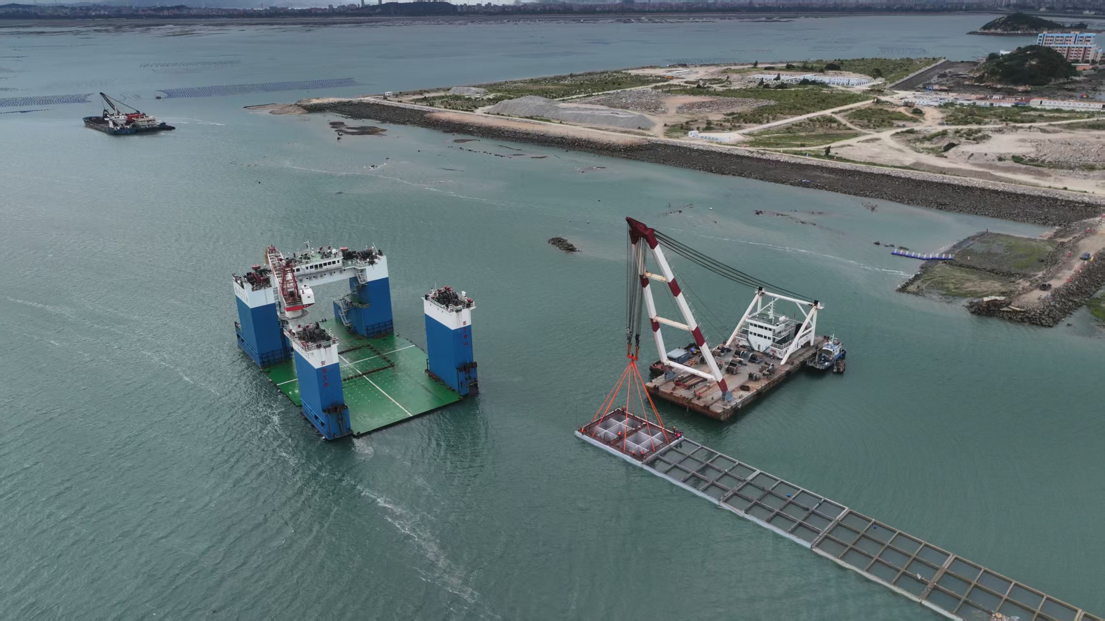 据悉,本项目11件沉箱均为CX型号,重量为2849吨,长17.85米,宽16.8米,高21.6米,约有7层楼高。受潮汐水位影响,该项目施工窗口短、作业难度较大,同时面临船机交叉作业、水上施工环境复杂等挑战,为此,项目各参建单位制定科学施工方案,全力以赴保工期,仅用43天就完成了所有11件沉箱安装,相较于原定计划提前一个多月完成,为2025年底完成项目填海验收目标打下坚实基础。