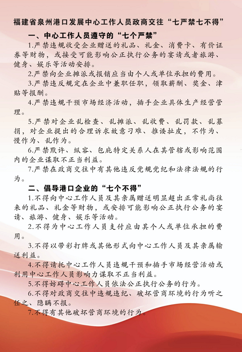 【清风港口】省泉州港中心纪委制定政商交往“七严禁七不得”