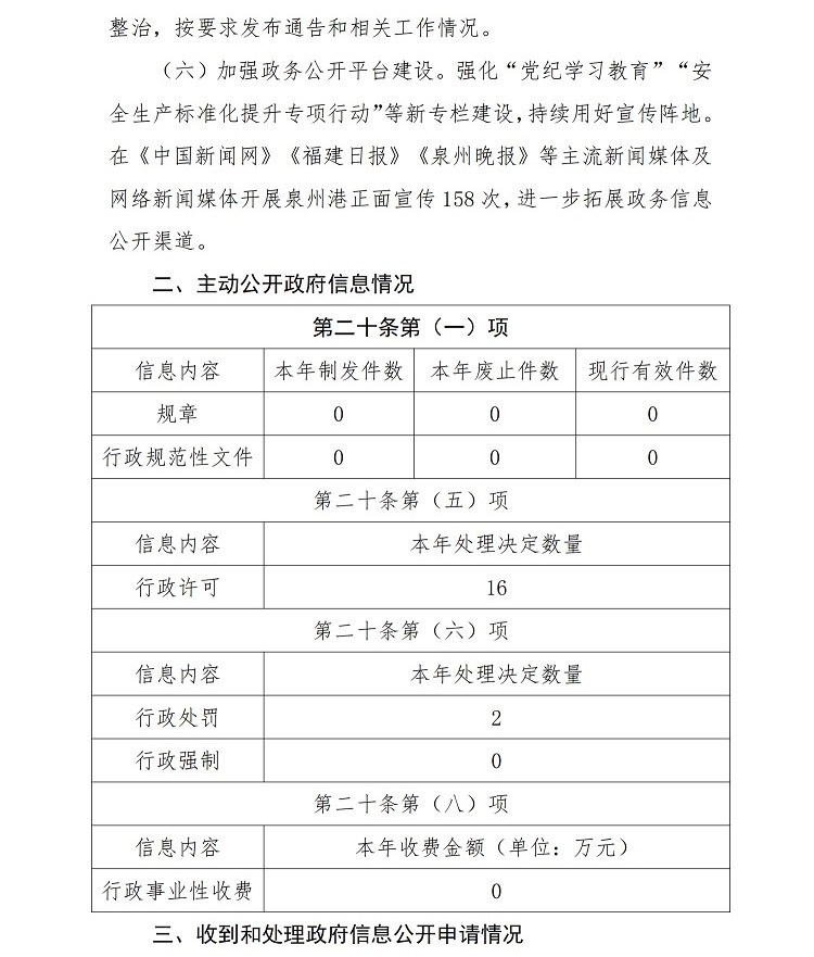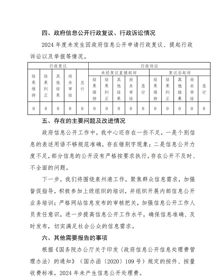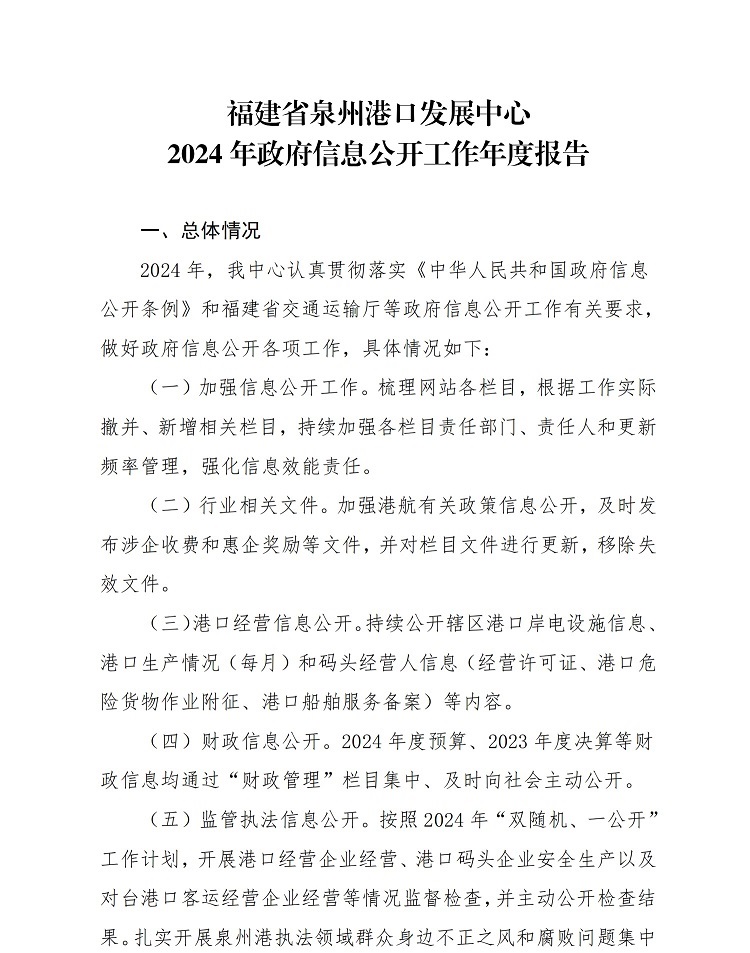 福建省泉州港口发展中心2024年政府信息公开年度报告