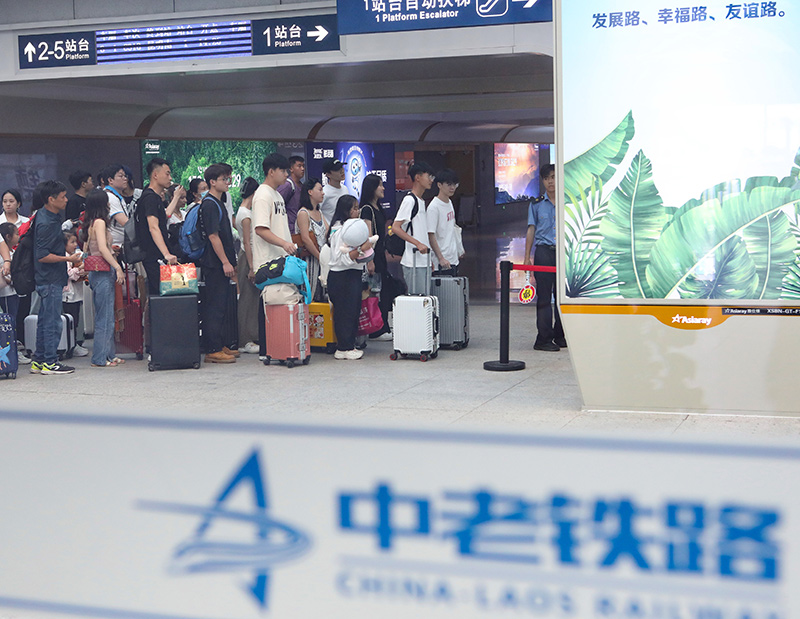 在云南景洪市的中老铁路西双版纳站,旅客有序进入站台乘车(2023年10月5日摄)。新华社发(李云生 摄)