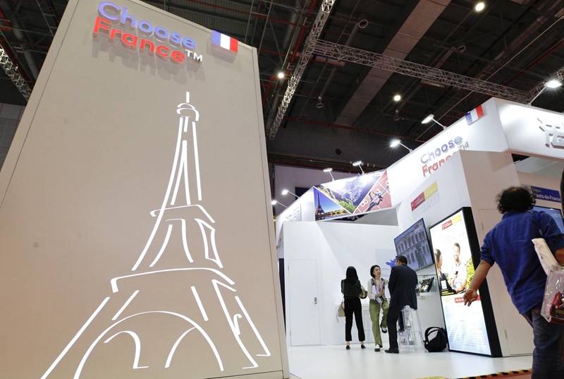 2019年11月5日,第二届中国国际进口博览会在上海国家会展中心开幕。这是参观者走过法国国家馆。新华社记者 张玉薇 摄