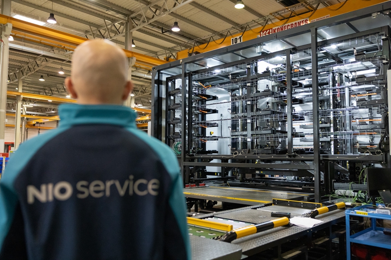 2024年1月26日,在匈牙利比奥托尔巴吉,一名工人在蔚来能源欧洲工厂工作。 新华社发(弗尔季·奥蒂洛?摄)