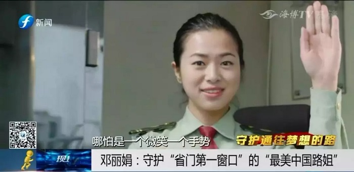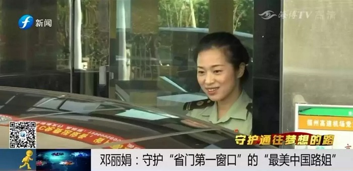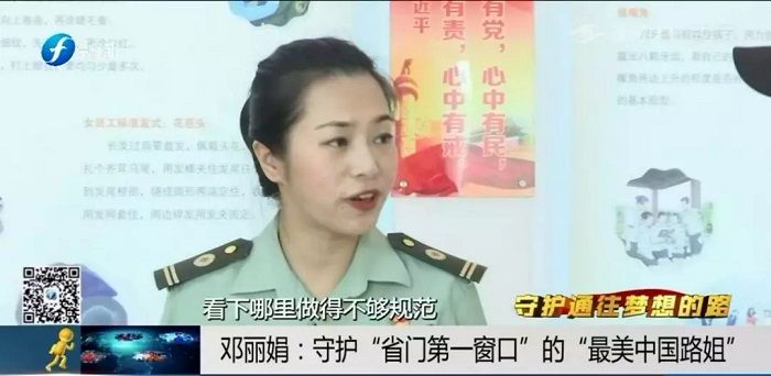 福州机场高速公路被誉为福建“省门第一路”,福州机场征管所的窗口也因此被大家称为“省门第一窗”。邓丽娟,就是这个窗口的“最美路姐”,她2010年退伍后进入福州机场征管所,虽然岗位不同,但身上同样是一抹绿,同样需要坚持和努力。邓丽娟带着军人不怕苦、不怕累的精神,一步步煅炼成长为“服务标兵”和“礼仪导师”,也让她成为了第三届“最美中国路姐”。