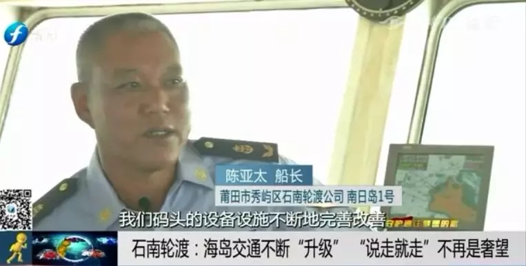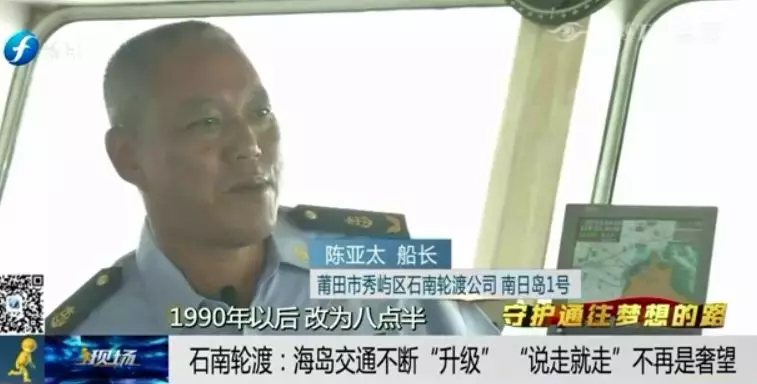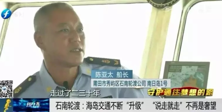 我叫陈亚太。在石南轮渡公司担任船长,已经20多年,差不多30年时间了。现在我是在南日岛一号上担任船长。老家就是南日岛石盘,是石盘村那边,靠近码头才五公里左右。