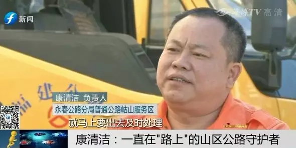 每一次抢险,每一次的抢通道路,康清洁都冲在最前面,身先士卒,亲力亲为,让他成为公路养护战线上赫赫有名的"拼命三郎"。并先后获得全国五一劳动奖章、福建省劳动模范、福建省"最美养路工"等荣誉称号。他所在的公路站被命名为"康清洁公路站",这是全省第一个以养路工名字命名的公路站。