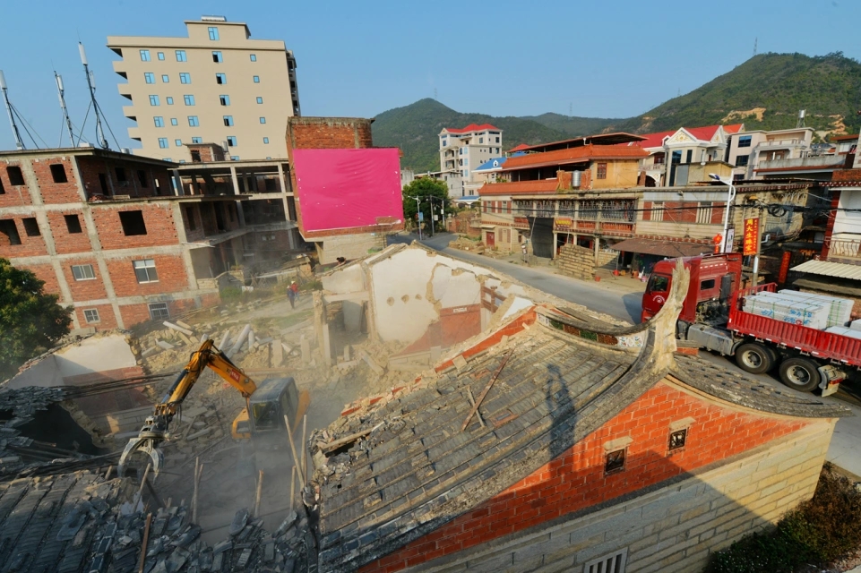 “诶,那个石磨盘给我留着,那个瓦片一片都不能丢。”近日,在泉州南安的县道326线洪梅镇洪梅村段,一座古厝正在拆除,90岁高龄的叶玉专老人不时跑出来看看。