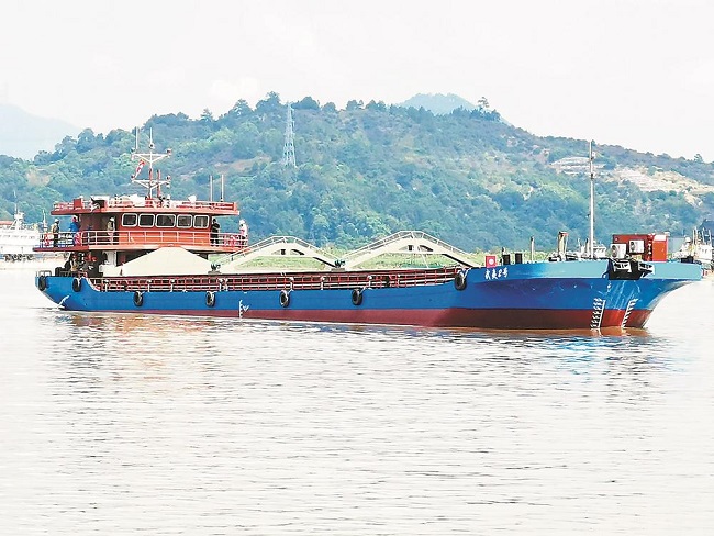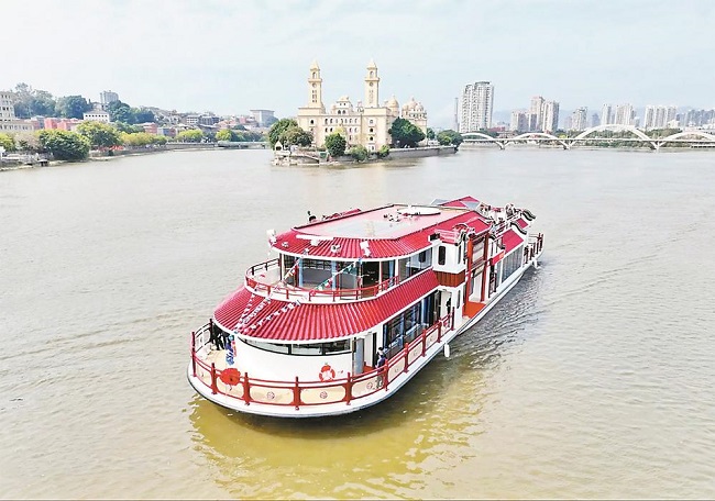 位于闽江的58米内河集散两用增程式电动货船“武夷2号”(本报记者 赖昊拓 摄)