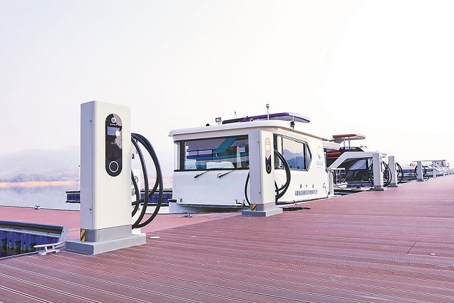 宁德古田县翠屏湖边的星云船用集中式超级充电系统