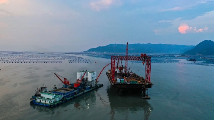 宁上高速东吾洋特大桥首个主墩桩基全部灌注完成