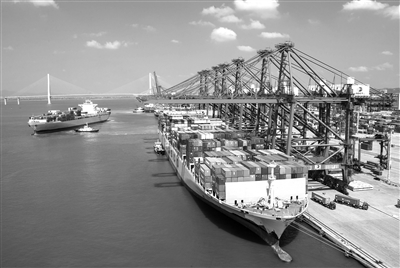 2017年12月,“台北快轮”从金井港区3号泊位启航,开往台北港。这艘货轮长约167米,总吨位达18080吨,一次最大可运载230标集装箱。