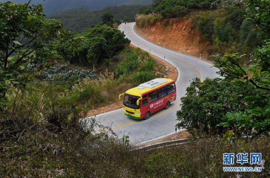 2月28日,一辆公交车行驶在福清市新厝镇凤迹村通往外界的山路上。