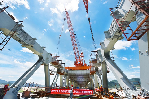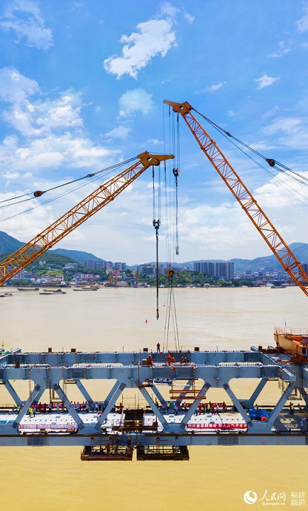 人民网福州6月16日电(余杉芳) 6月15日,国内跨径最大的变高度连续钢桁结合梁桥梁道庆洲过江通道跨江主桥成功合龙。作为福州市第一座公轨两用大桥,道庆洲过江通道担起了连通福州市仓山区和滨海新城两岸的重要角色,项目建成后,从海峡国际会展中心、三江口片区开车到滨海新城,仅需25分钟,比现在节省大约1小时车程。