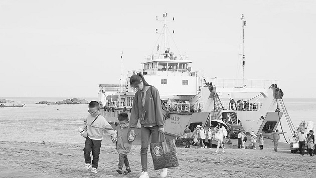 旅客有序地下船,登上南日岛。(丛文俊 摄)