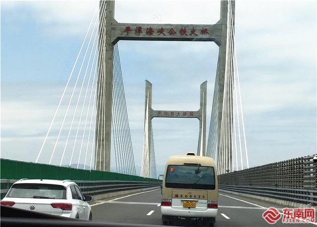 采访团车辆行驶在平潭海峡公铁大桥上。(东南网记者 张立庆 摄)