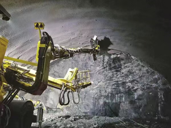 文笔山1号隧道采用多臂凿岩台车钻孔施工。