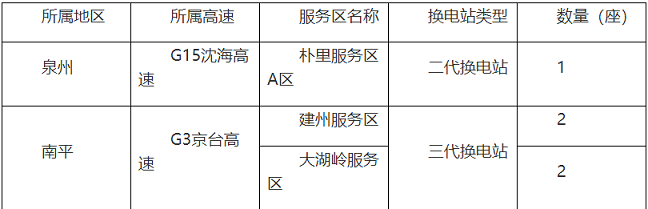 福建高速能源公司与蔚来能源公司合作,已在省内车流量大、用电需求高的3对服务区落地运营5座换电站,其中1座为二代换电站、4座为三代换电站。