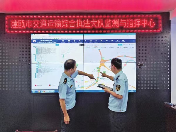 在福建省建瓯市,当地交通运输综合执法大队的监控指挥中心,交通执法员正使用“福建省道路运输车辆卫星定位系统”和福建危管一体化平台“危管助手”,通过网络大数据,对该市6家危险货物运输企业的105辆危险货物运输车辆进行全域、动态、无死角监管。