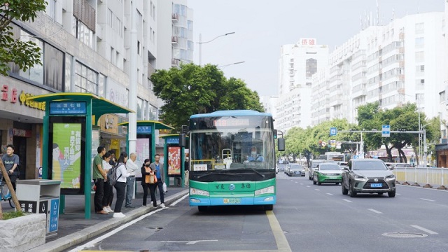 早高峰出行缩短近4分钟 福州首个分区域停靠公交站台初见成效(福州市道运中心 供图)