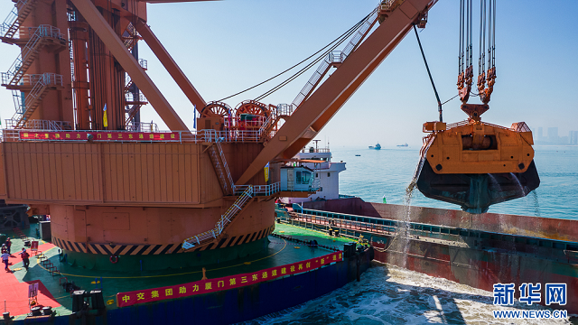 新华网福州1月19日电(刘默涵) 厦门第三东通道项目施工又有新进展。1月18日,超大型抓斗式挖泥船“金广”轮,开足马力投入厦门第三东通道建设施工。